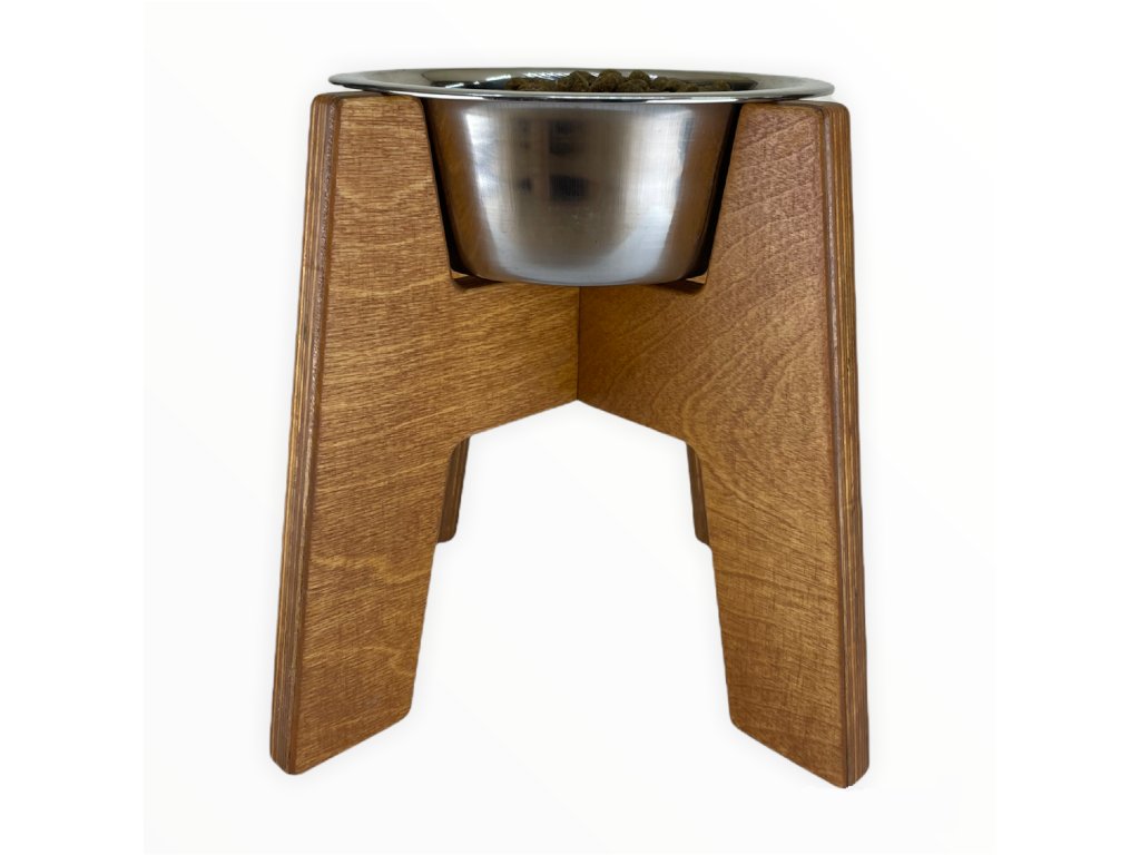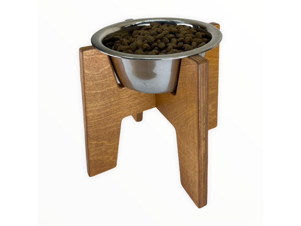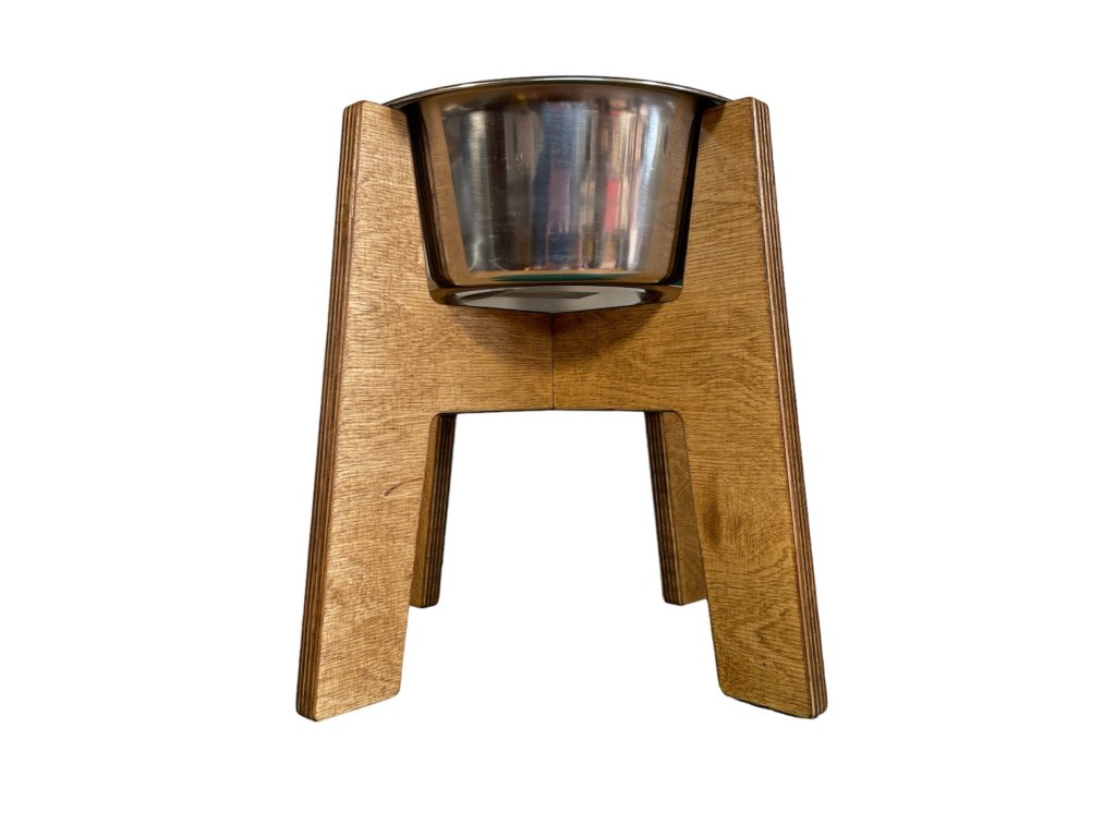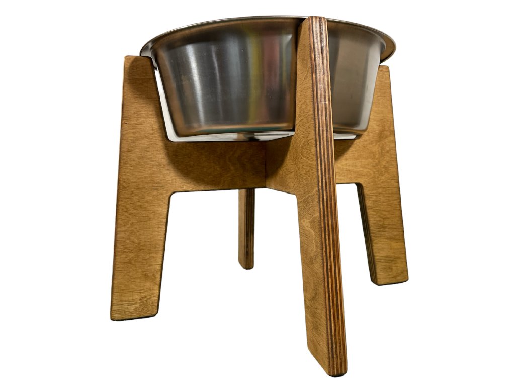 Doprajte svojmu psovi pohodlie a štýl s ručne vyrobeným dreveným stojanom na misku z našej dielne v Jeseníkoch. Každý stojan je vyrobený z vysoko kvalitnej 15 mm preglejky, starostlivo spracovaný, ošetrený prírodným olejom a vybavený protiskluzovými nožičkami pre maximálnu stabilitu. Súčasťou balenia je aj miska z nehrdzavejúcej ocele, ktorú môžete ľahko nahradiť náhradnou (tiež dostupnou u nás).