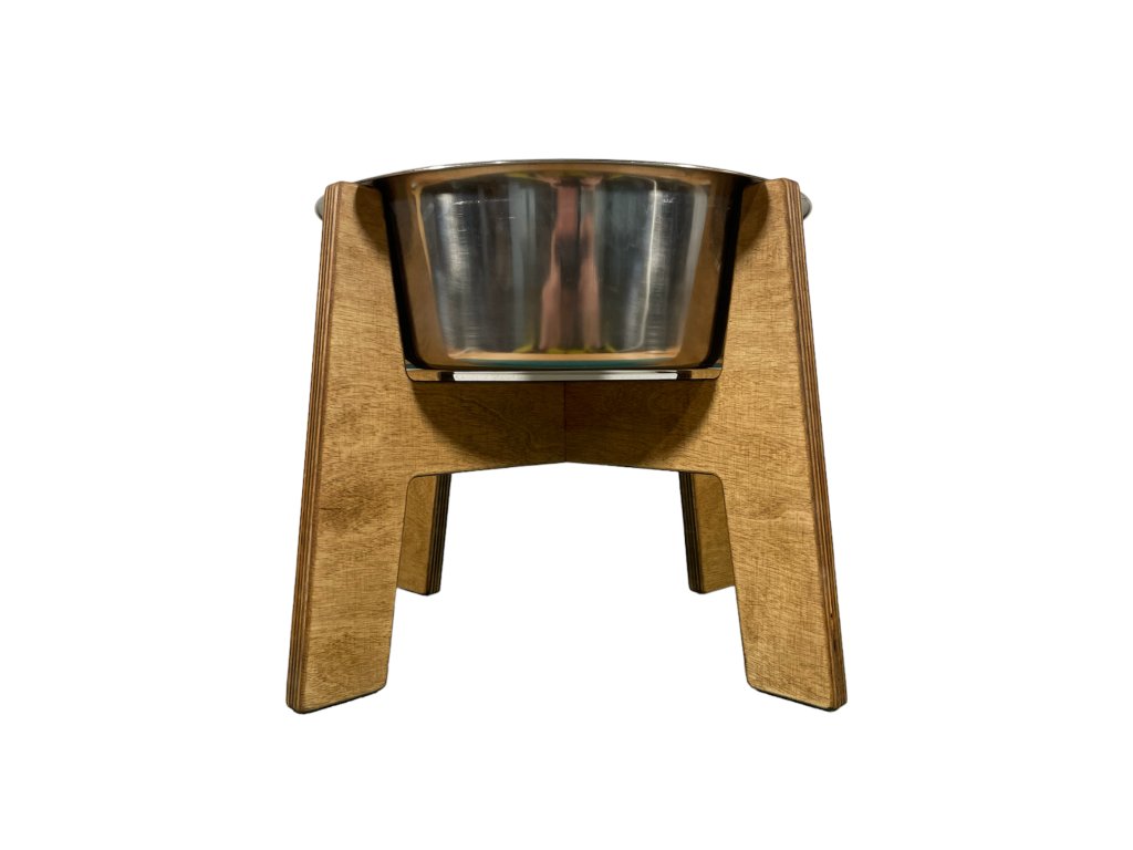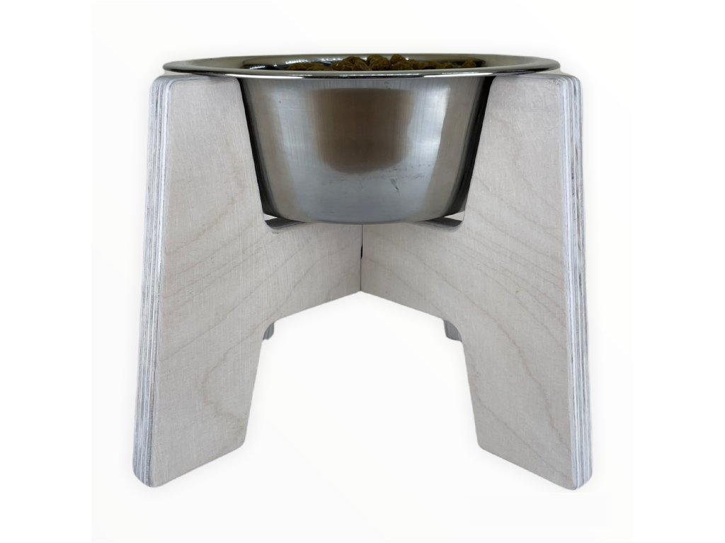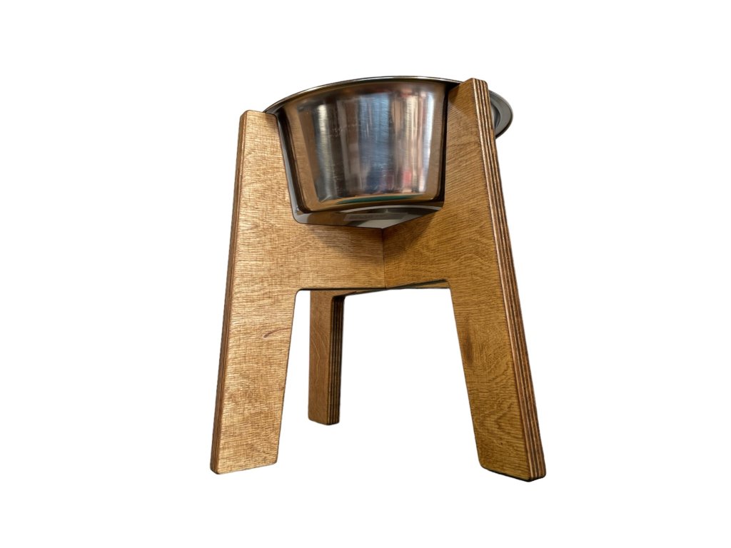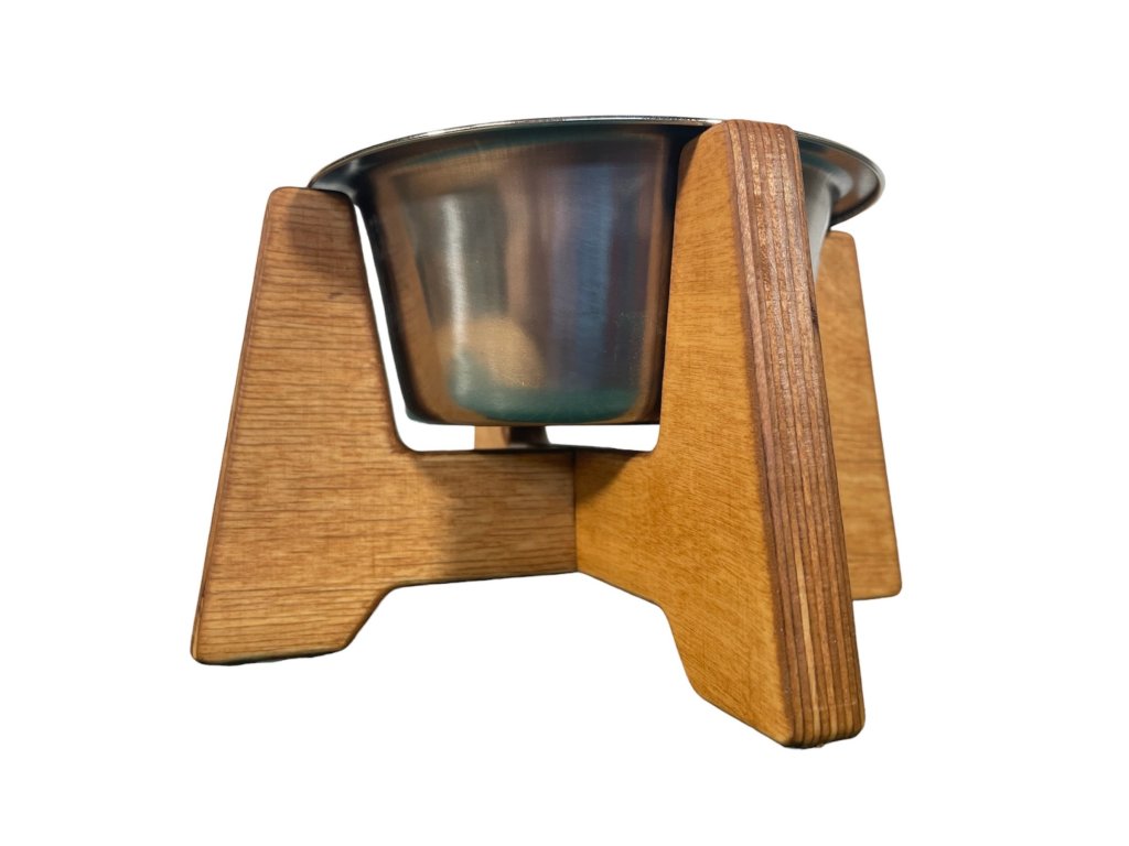 Doprajte svojmu psovi pohodlie a štýl s ručne vyrobeným dreveným stojanom na misku z našej dielne v Jeseníkoch. Každý stojan je vyrobený z vysoko kvalitnej 15 mm preglejky, starostlivo spracovaný, ošetrený prírodným olejom a vybavený protiskluzovými nožičkami pre maximálnu stabilitu. Súčasťou balenia je aj miska z nehrdzavejúcej ocele, ktorú môžete ľahko nahradiť náhradnou (tiež dostupnou u nás).
